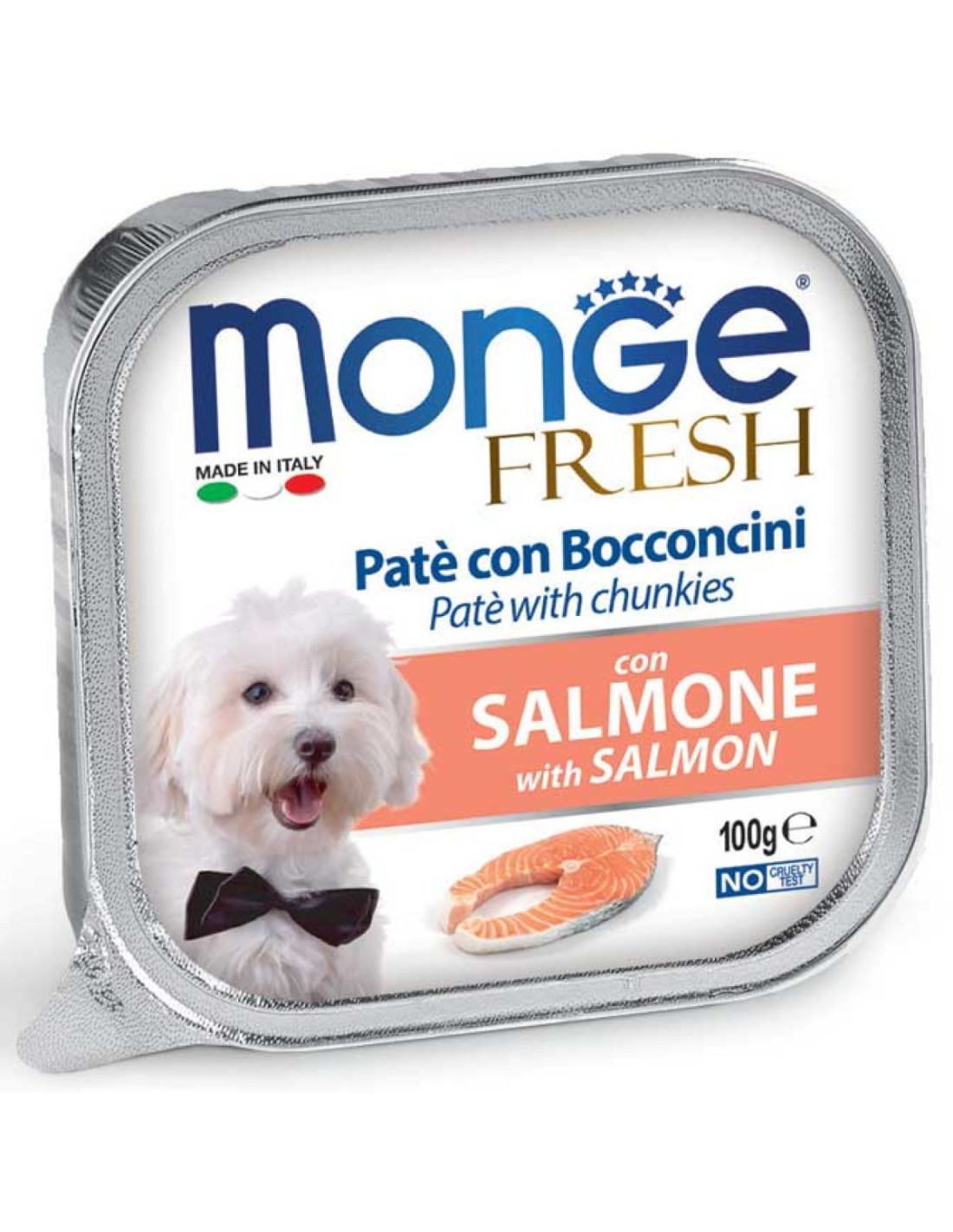 Monge Fresh vanička paté s lososom v balení 100 g je skvelou voľbou krmiva pre vašich psov. Táto vanička je navrhnutá tak, aby poskytovala vynikajúcu chuť a výživu, ktorú vaši psi ocenia. Monge Fresh vanička paté s lososom obsahuje kvalitné lososie mäso, ktoré je bohaté na omega-3 mastné kyseliny. Tieto živiny podporujú zdravie srdca a kĺbov, a tiež prispievajú k zdravej koži a srsťe vášho psa. Balenie o veľkosti 100 g je ideálne pre jedno kŕmenie vášho psa. Vanička je prakticky balená a ľahko sa otvára, čo vám uľahčuje podávanie jedla vášmu psovi. Monge je značka, ktorá sa zameriava na výrobu kvalitného krmiva pre psov. Ich Fresh vanička paté s lososom je vyrobená s využitím prírodných a kvalitných surovín, aby poskytla vášmu psovi vyváženú stravu a výživu. S Monge Fresh vaničkou paté s lososom môžete mať istotu, že váš pes dostáva chutné a výživné krmivo, ktoré mu poskytuje všetky potrebné živiny pre zdravý a šťastný život.