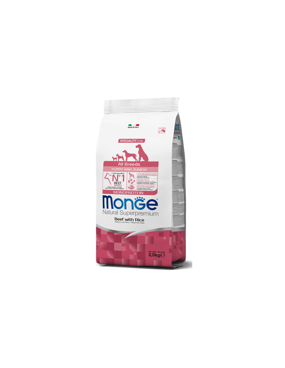 Monge dog puppy hovadzie s ryžou 2,5 kg - kompletné krmivo pre šteňatá všetkých veľkostí